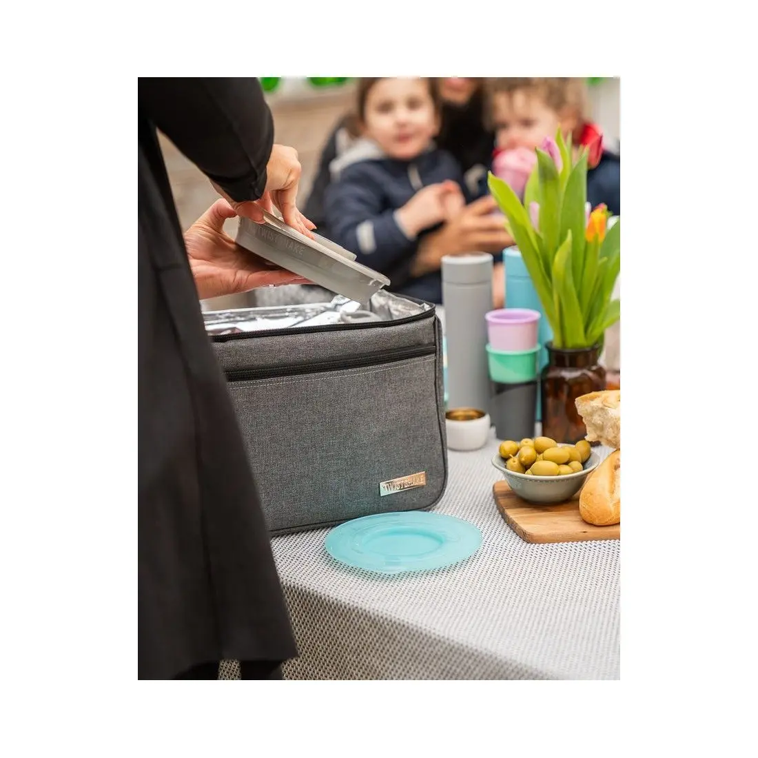 Le sac repas isotherme Twistshake a différents compartiments de différentes tailles, pour vous permettre de stocker les différentes boites et portions de repas.