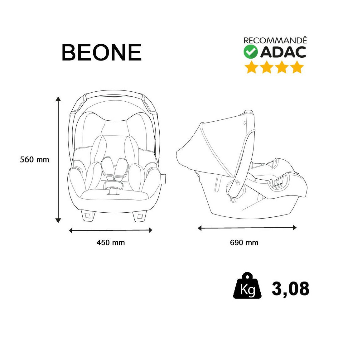 Le siège auto BEONE est une coque bébé groupe 0+ pour les enfants dès la naissance jusque 13kg. Il se positionne uniquement dos à la route.