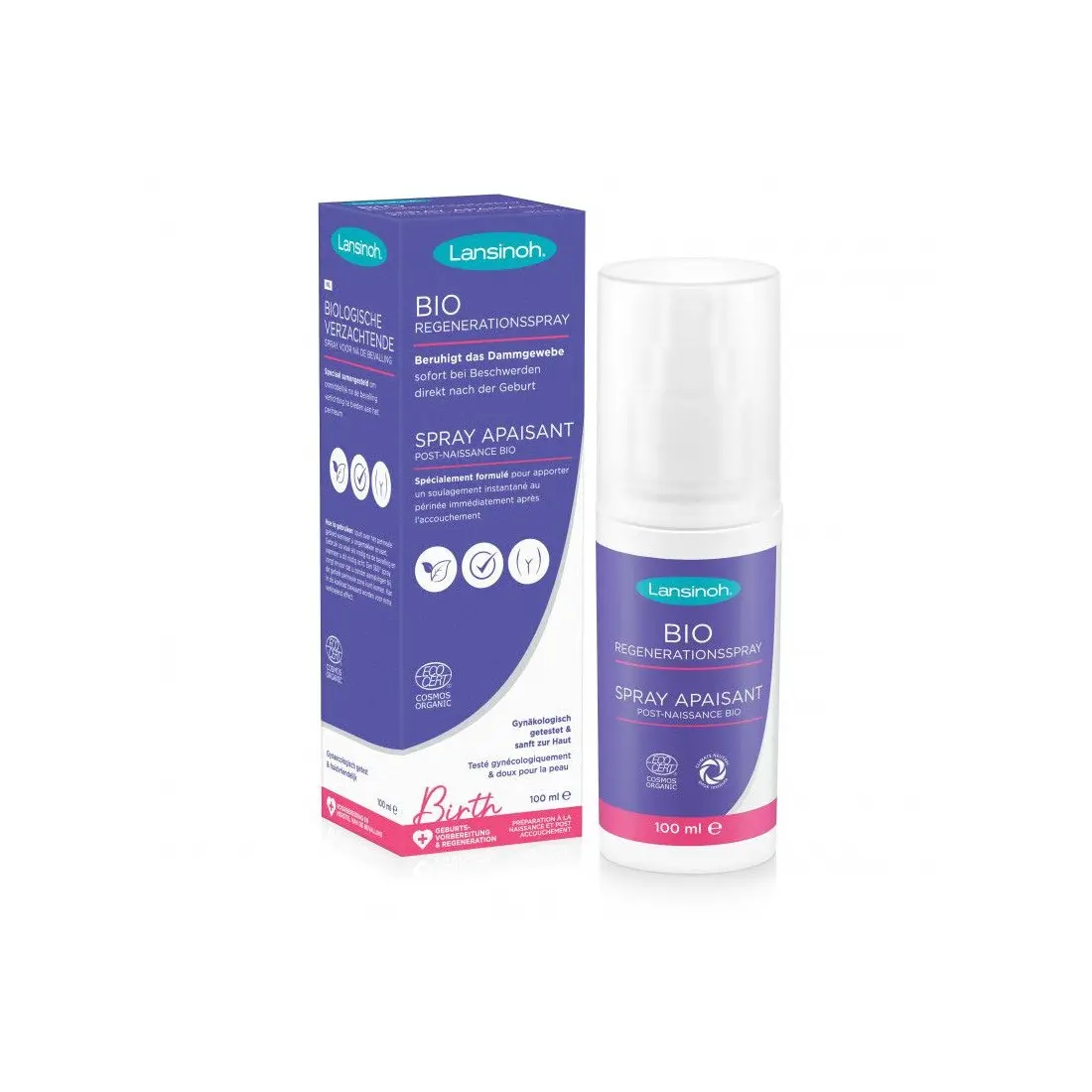 Ce spray Lansinoh est composé d’ingrédients naturels Bio, aux propriétés apaisantes et à l’effet fraicheur (Aloe vera, camomille, concombre…), certifié Ecocert. Facile d’utilisation avec son spray 360° qui fonctionne même la tête en bas. Testé gynécologiquement spécifiquement pour la zone périnéale.