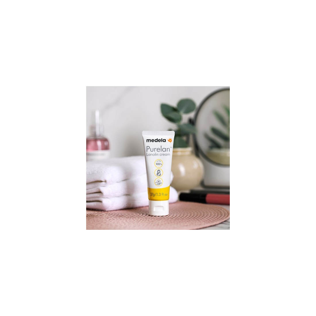 Crème pour mamelons à la lanoline pure Purelan™ 100 Medela. Cette crème aide à soulager les mamelons sensibles ou desséchés et à former une barrière de protection supplémentaire sur les mamelons gercés ou douloureux, pendant la grossesse et pendant l'allaitement.
