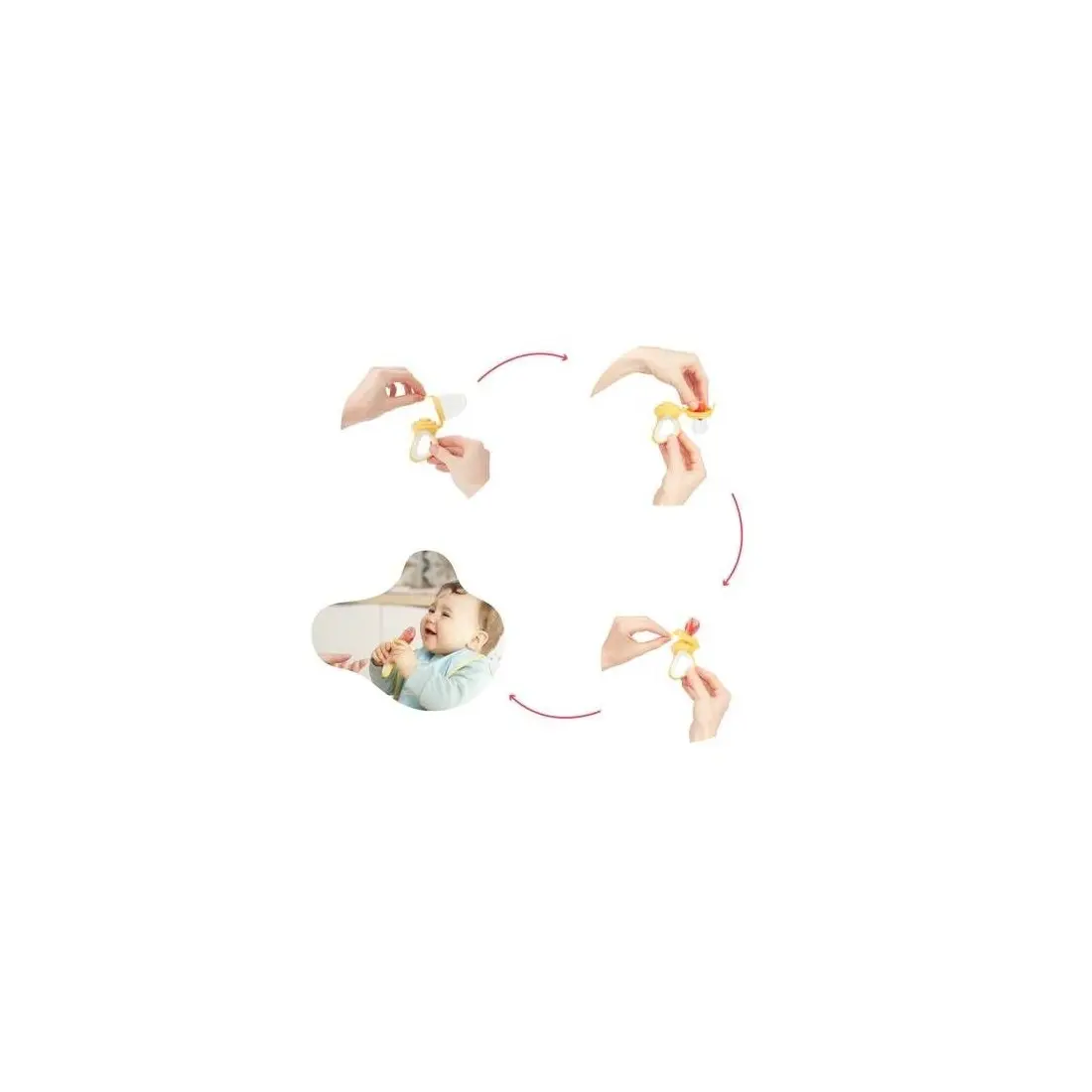La sucette grignoteuse de Badabulle a une tétine en silicone alimentaire qui lui permet de mastiquer en toute sécurité sans ingérer de morceaux solides. Avec des aliments froids dans la tétine, la grignoteuse apaise également les poussées dentaires de votre tout petit.