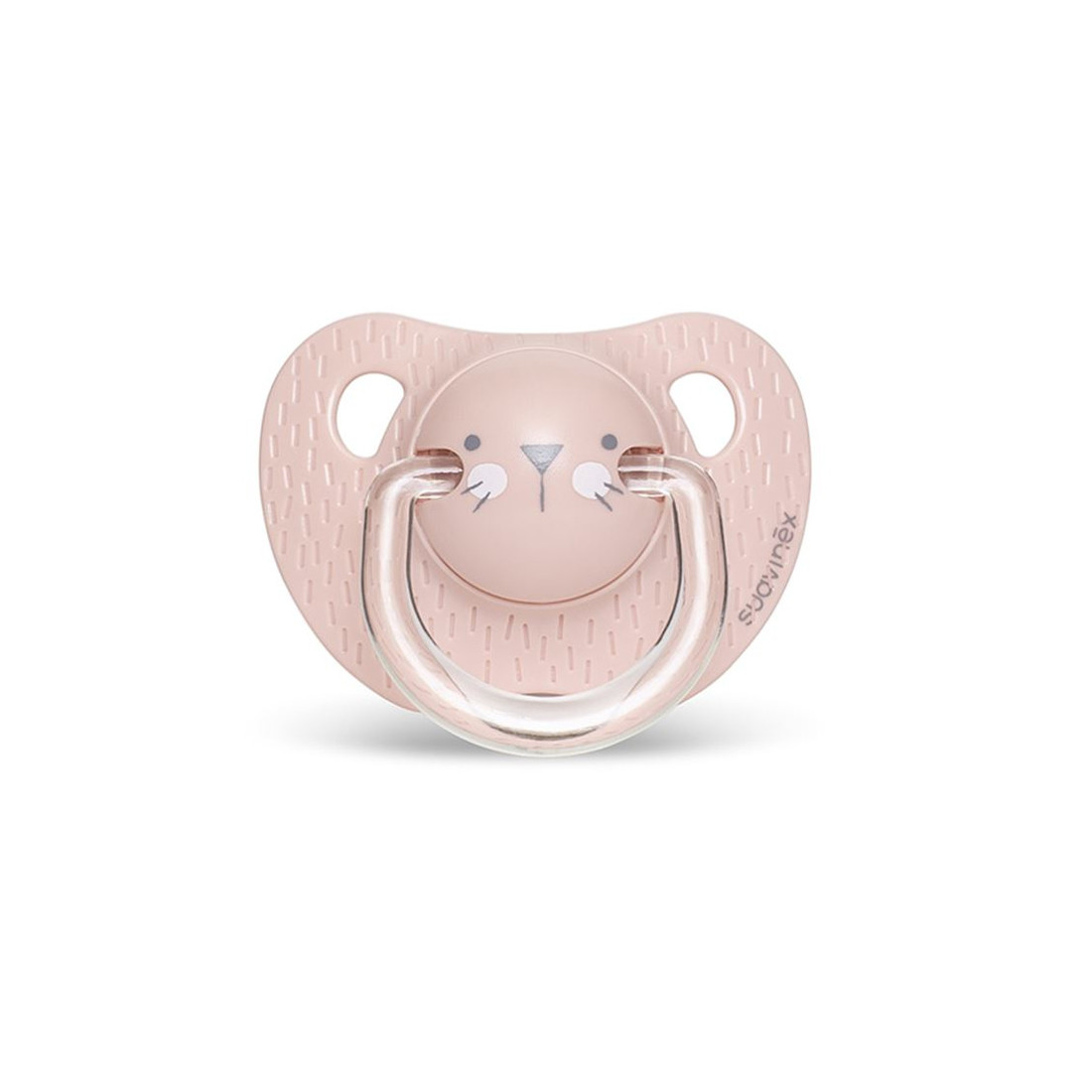 Suavinex Sucette Premium 0-6 mois avec tétine symétrique silicone "Baby lapin" - Rose.