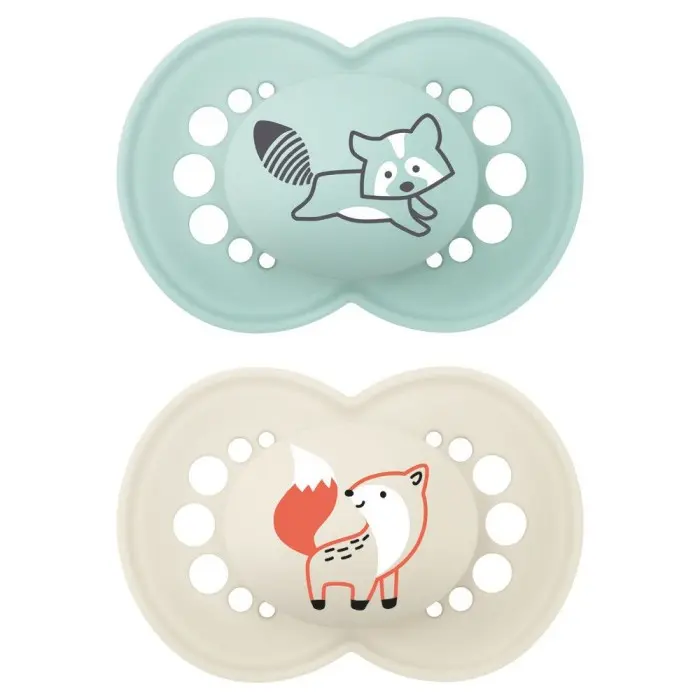 La sucette Mam laisse respirer la peau grâce à ses larges ouvertures et ses trous uniques à l’intérieur. Elle apaise et calme bébé.