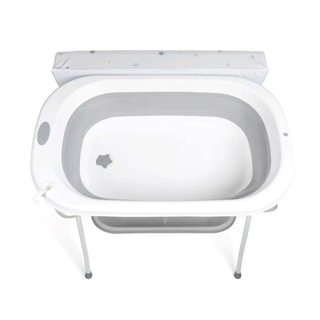 Ultra polyvalente, la baignoire peut être utilisée seule, séparément de la table à langer. Elle convient aussi bien à la maison qu’en voyage, et peut même être utilisée à la plage ou à la piscine, pour rincer bébé après la baignade.