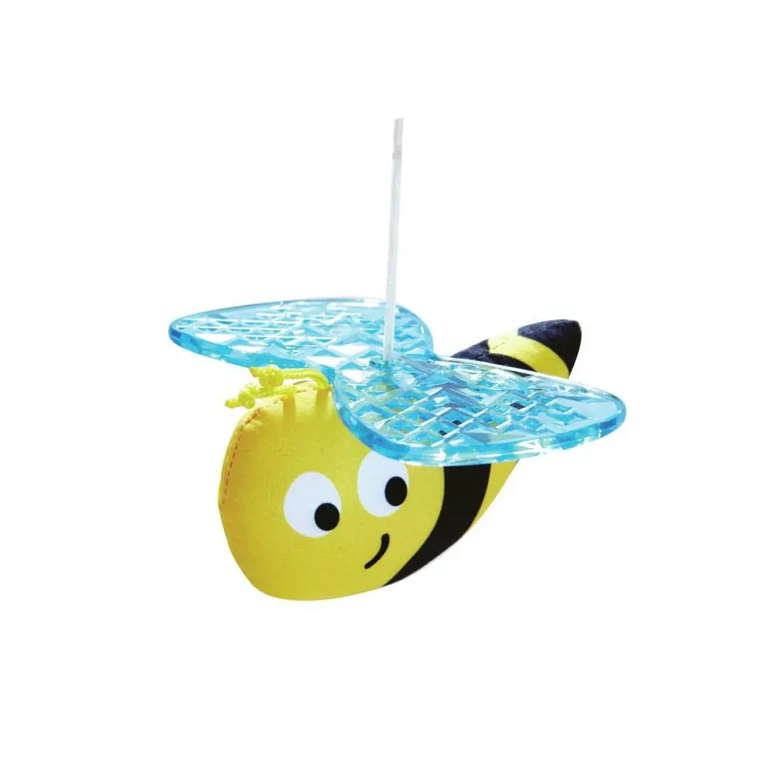 Le mobile en bois Hape dispose de trois insectes en tissu doux qui tournent lorsqu'on les pousse doucement, ce qui procure une stimulation visuelle chez bébé. Les ailes transparentes des insectes scintillent à la lumière, offrant une sensation de mouvement supplémentaire.