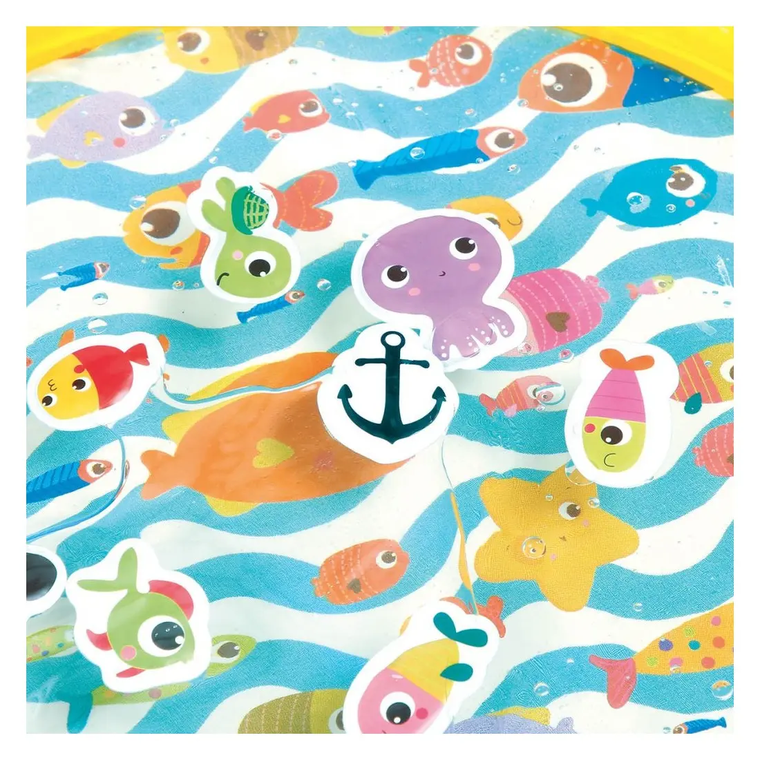 Idéal pour développer la motricité, ce Maxi Tapis d’eau éveille tous les sens de bébé ! Bébé essaiera de pêcher les animaux flotteurs qui se laissent volontiers déplacer en fonction du courant. Leurs couleurs vives et leur design rigolo amarrent l’attention des petits ! Les enfants s’amuseront à remuer les éléments aquatiques d‘un simple geste de la main.