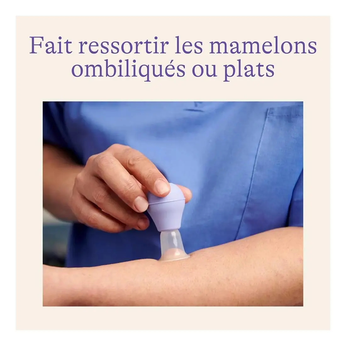 La Latch Assist™ Lansinoh® aide à faire ressortir le téton en douceur grâce à une aspiration contrôlée, permettant à bébé de mieux saisir le mamelon et de téter efficacement.