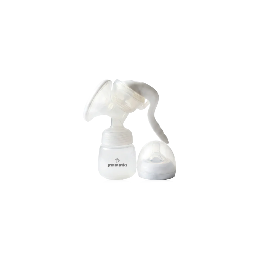 Pratique au quotidien, le tire-lait manuel Mammia est livré avec une tétine et son couvercle.