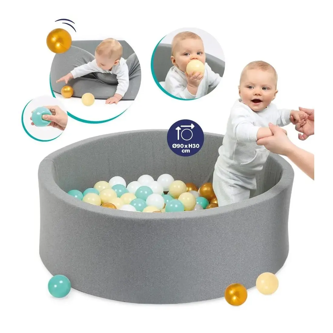 Grâce à sa jolie couleur grise, elle s’adapte à tous les intérieurs et sera idéale pour décorer la chambre de bébé ! Parfaite pour les tout-petits, cette piscine toute douce et sécurisée est remplie de balles souples aux couleurs élégantes pour des heures de jeu sans fin.
