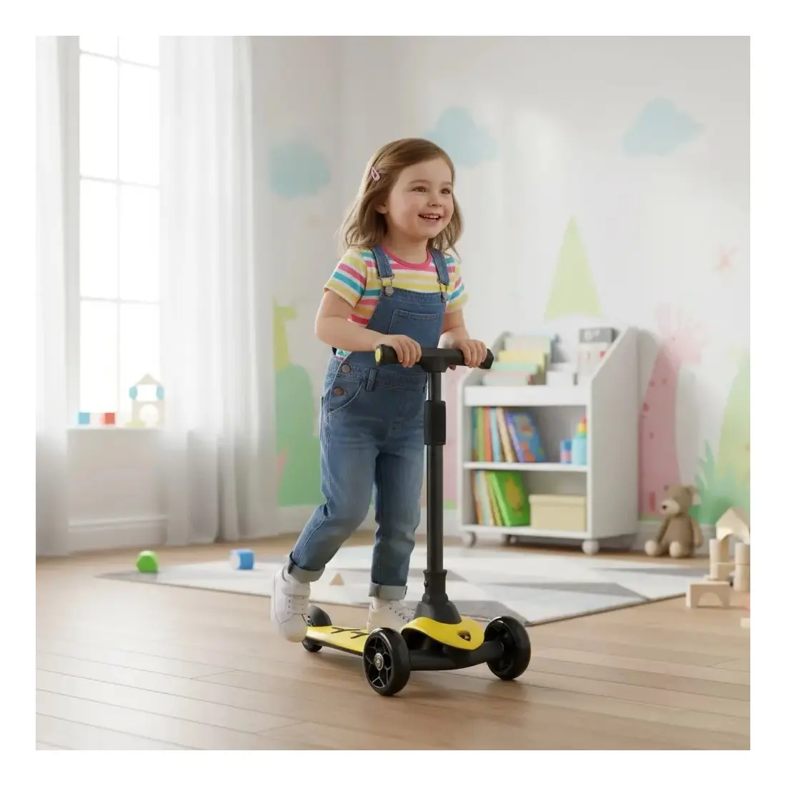 Le guidon ajustable en hauteur permet d’adapter la trottinette à la taille de l’enfant, assurant ainsi une utilisation confortable et durable. Son design moderne et soigné en fait un choix parfait pour allier sécurité, praticité et esthétisme.