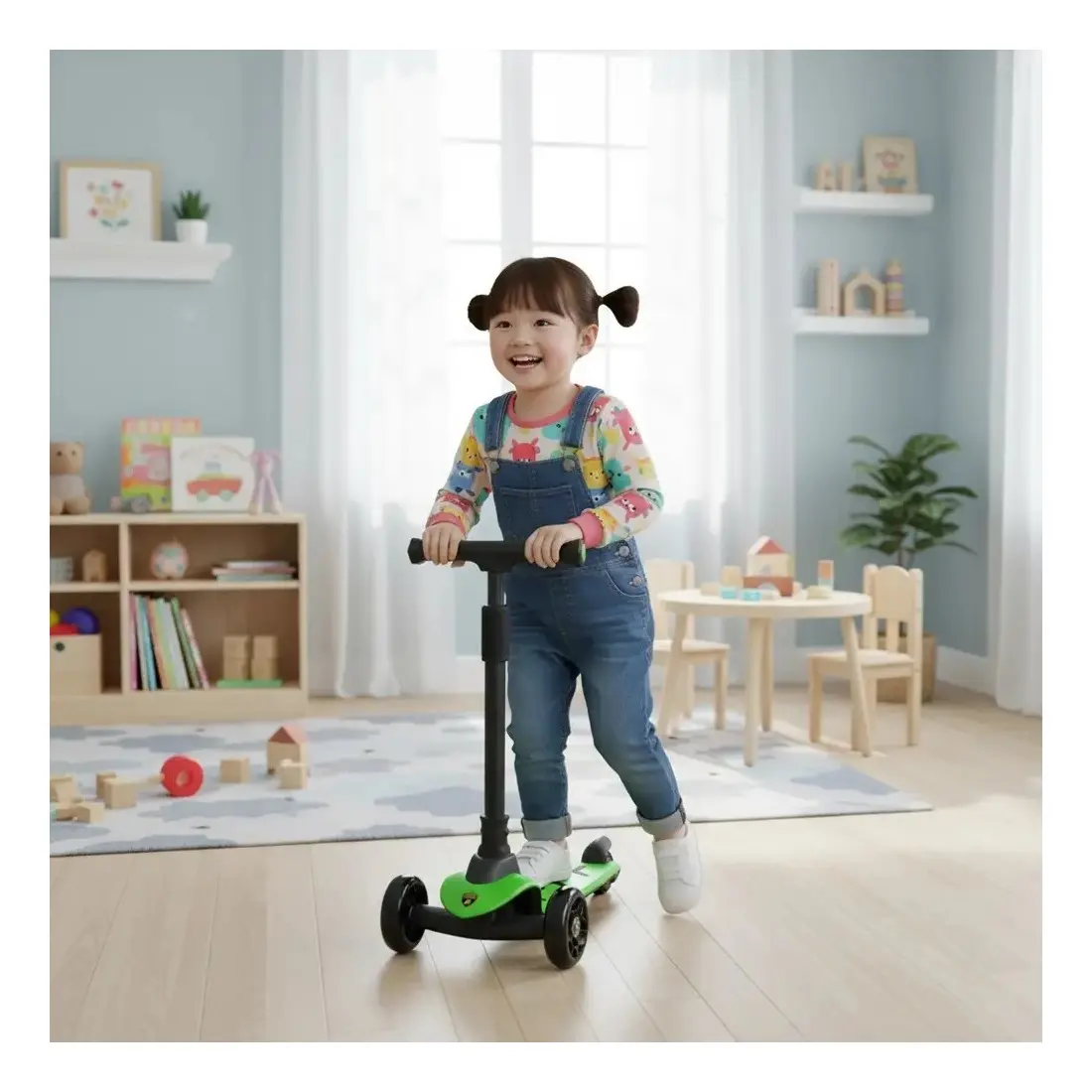 Le guidon ajustable en hauteur permet d’adapter la trottinette à la taille de l’enfant, assurant ainsi une utilisation confortable et durable. Son design moderne et soigné en fait un choix parfait pour allier sécurité, praticité et esthétisme.
