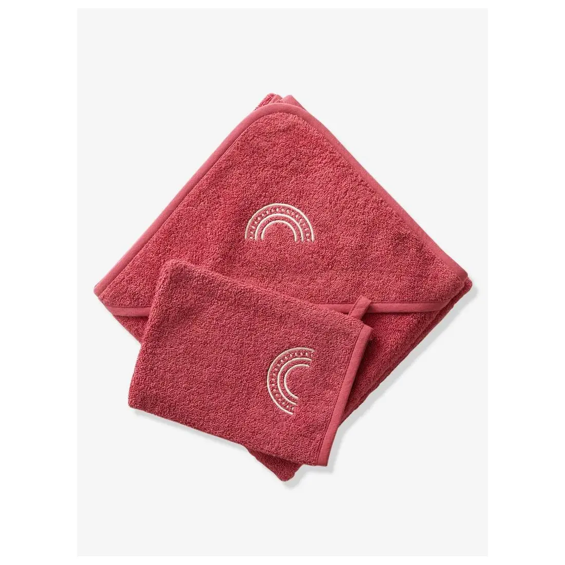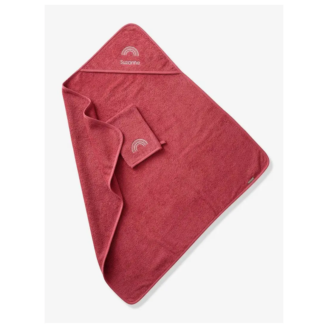 Sortie de bain + gant Oeko-Tex® - Framboise 80x80cm.