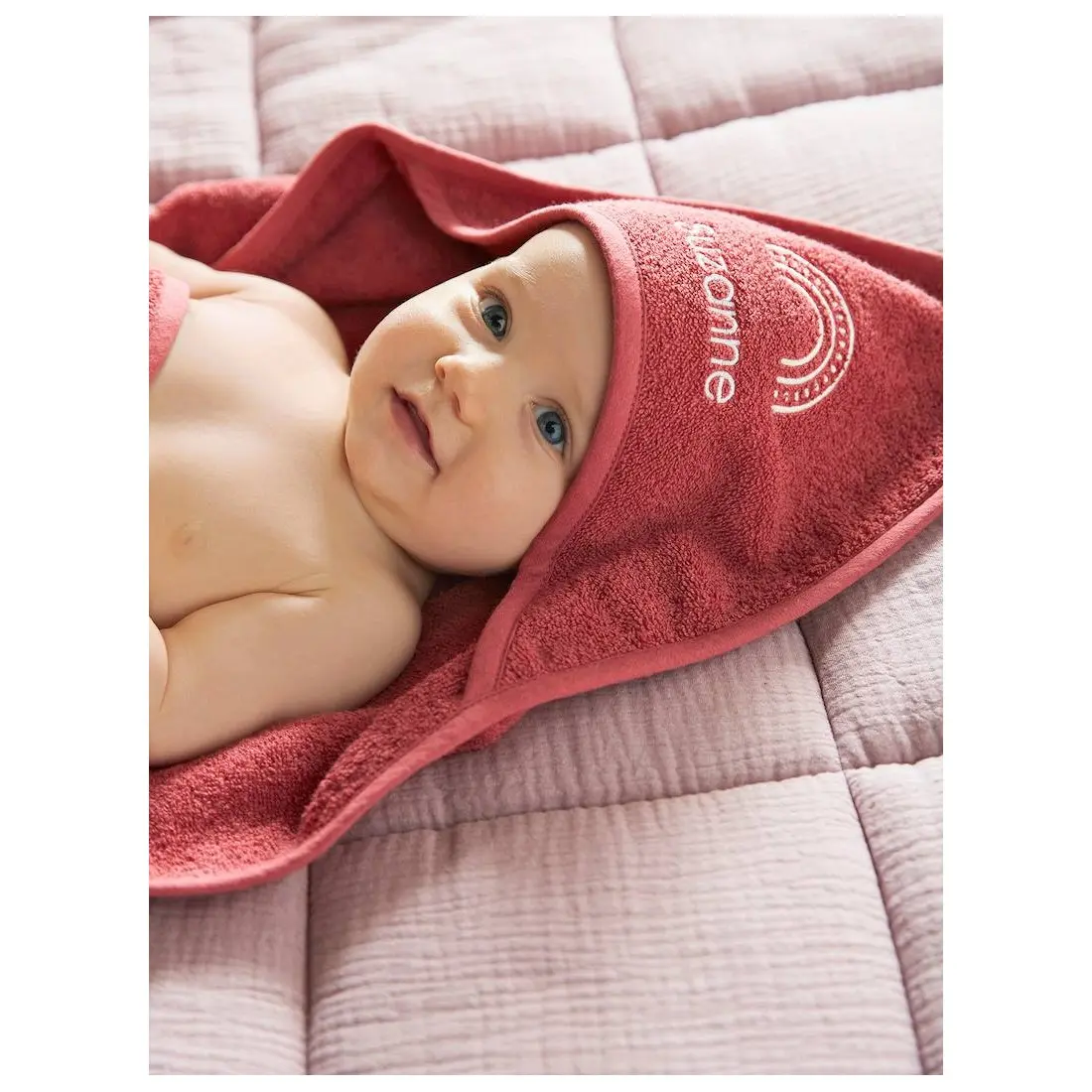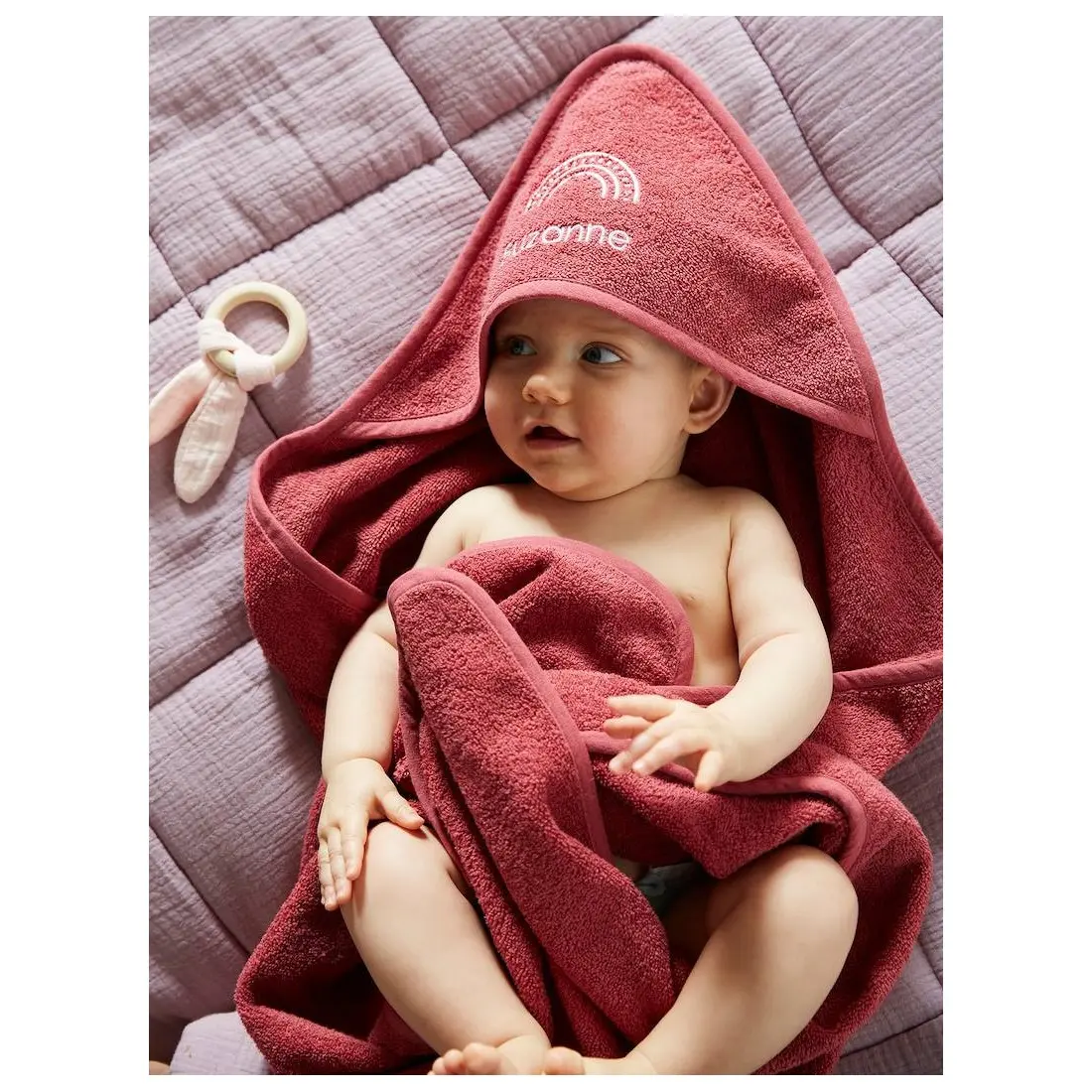 Un joli duo cape de bain + gant de toilette qui vient colorer la sortie de bain de bébé ! Confectionnée en éponge bien moelleuse, la cape de bain couvre bébé de la tête aux pieds grâce à sa capuche. Un petit motif brodé vient parfaire cet adorable set de toilette.