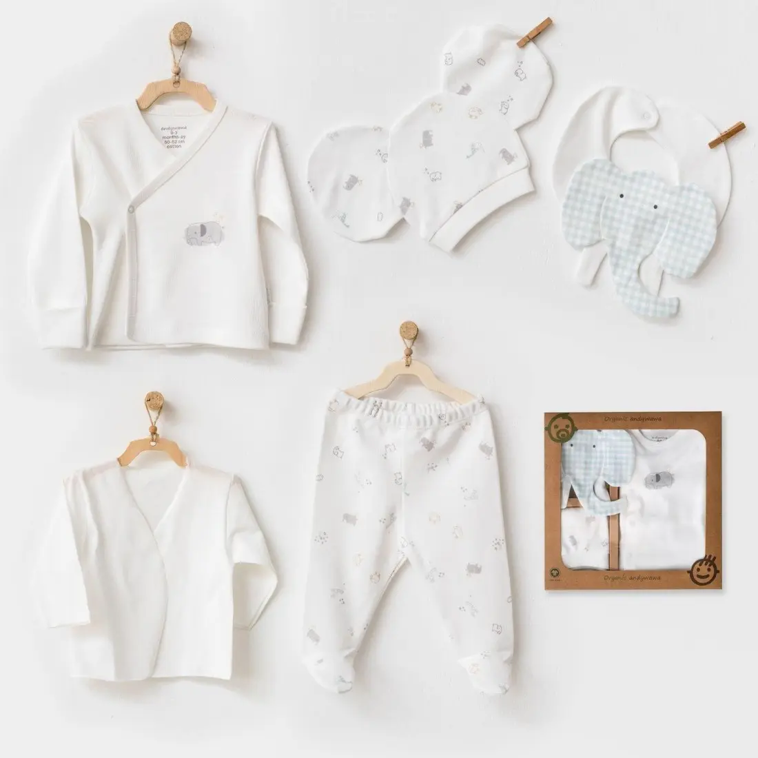 Coffret Naissance 100% Coton 5 Pièces - Éléphant