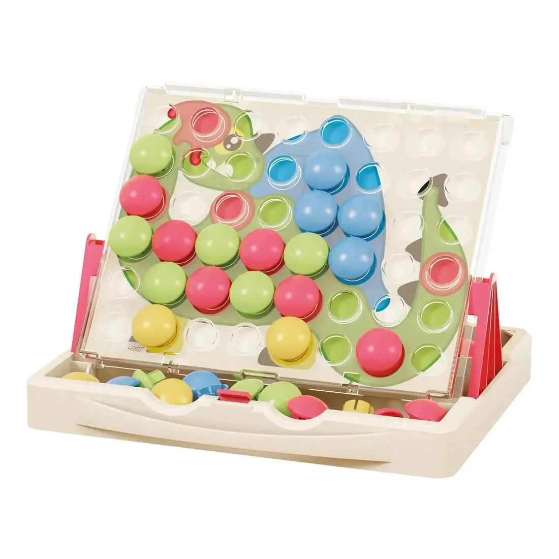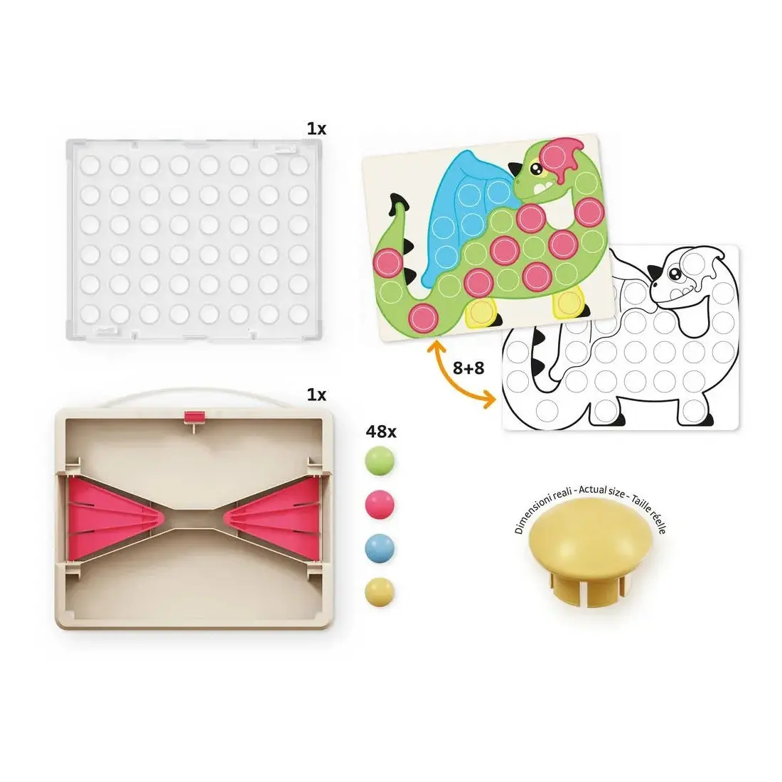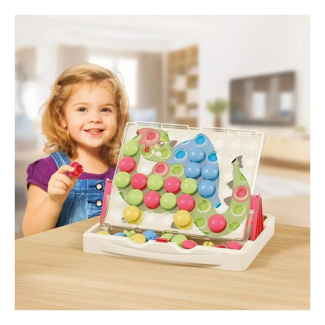 Un jouet adapté pour les enfants âgés de 2 ans et plus, il choisit une planche modèle, la glisse sous la grille transparente à plots posée sur le chevalet.