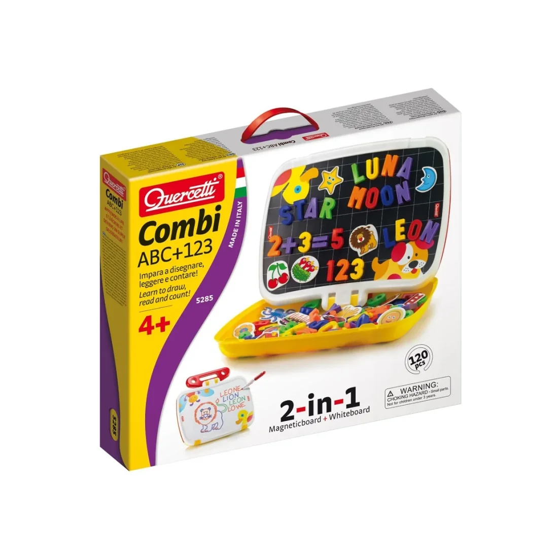 Il sera très amusant de composer ses premiers mots ou de faire ses premières opérations, aidés par des fiches magnétiques spéciales pour ce propos. Combi ABC a un design très joli et captivant, sans angles et avec des formes très arrondies.