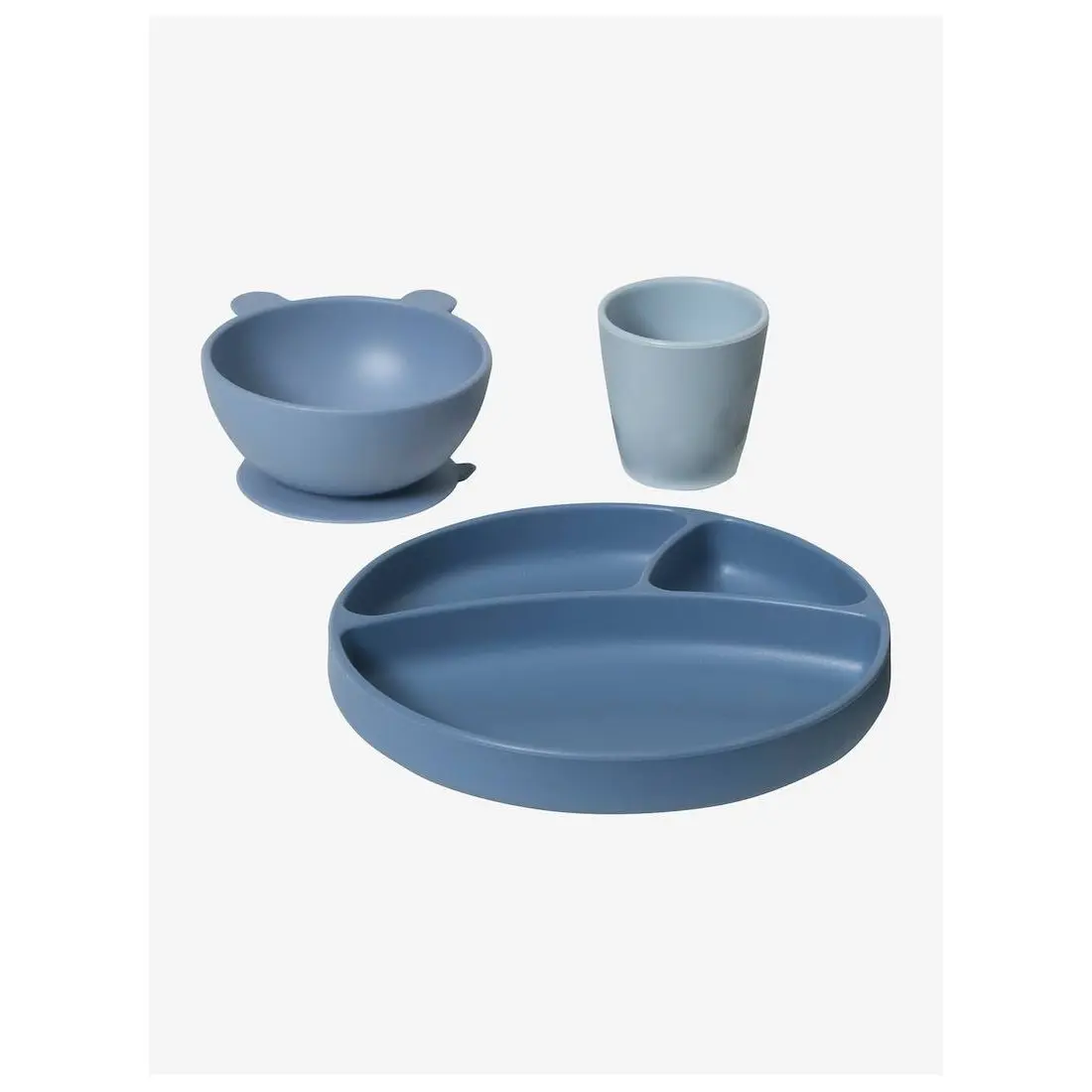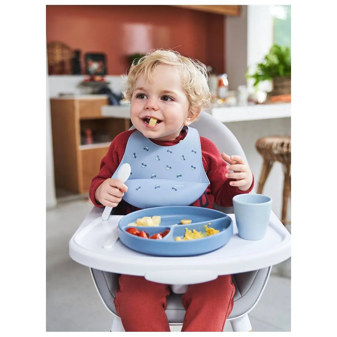 Coffret repas en silicone doux et souple qui ne craint pas les chutes pendant les repas ! Décliné dans de jolis coloris, il promet d'agréables repas hauts en couleurs !