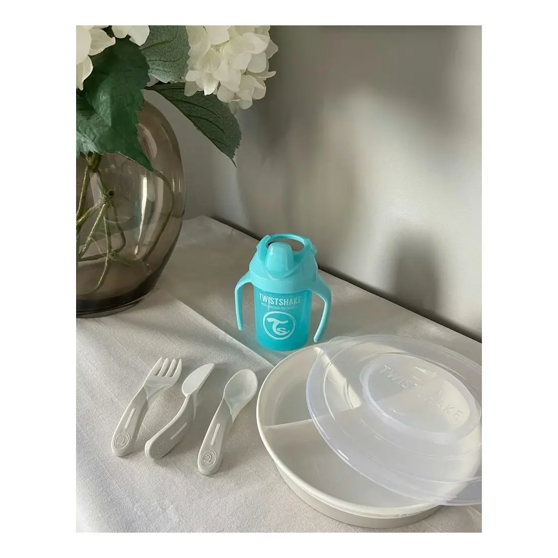 Couverts d'apprentissage Twistshake utilisables dès 6mois, ils sont courts et faciles à utiliser pour que votre bébé commence à manger seul.