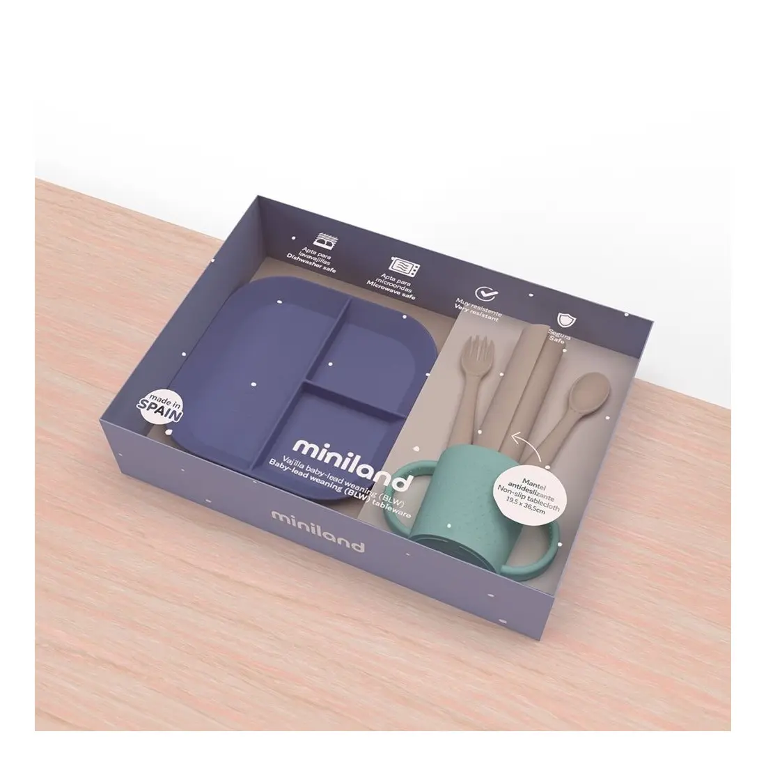 Le Coffret Repas Coucher du Soleil de Miniland est conçu pour accompagner votre enfant dans l’apprentissage des repas en toute sécurité et avec confort. Avec son design ingénieux et ses matériaux de qualité, il offre tout ce dont vous avez besoin pour des repas pratiques, propres et amusants.