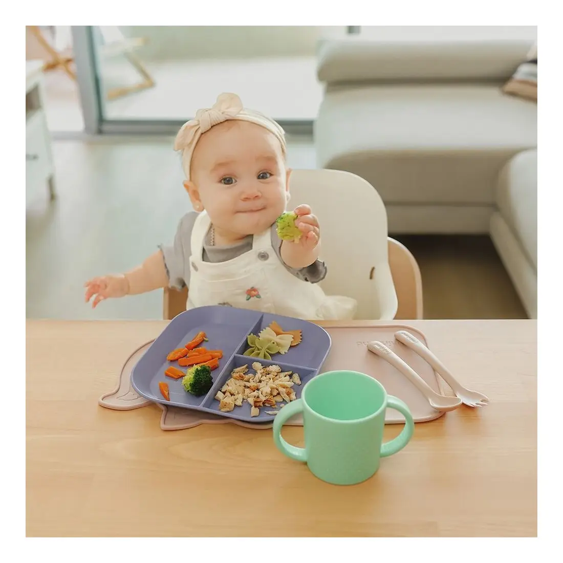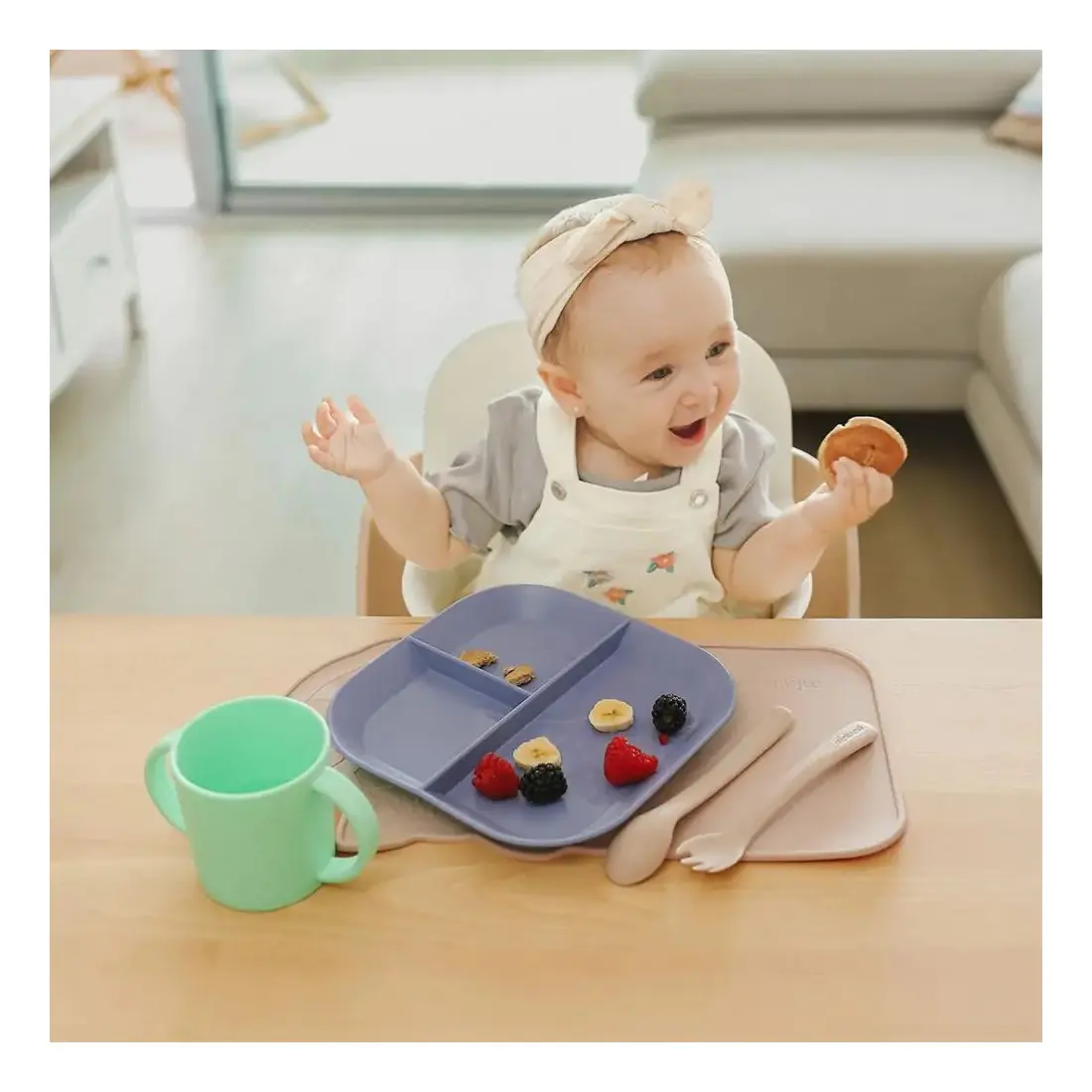 Assiette à trois compartiments : Parfaite pour séparer différents types d’aliments et initier votre enfant à de nouvelles saveurs.